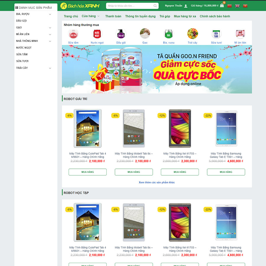 Theme wordpress bách hóa xanh